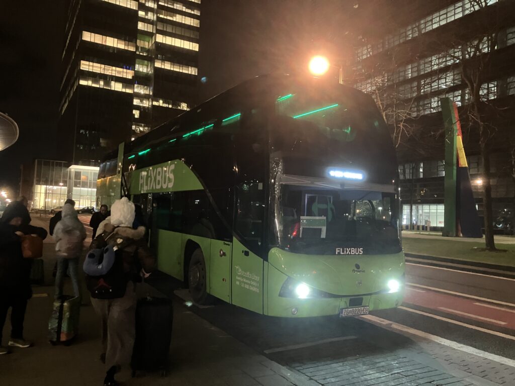 今回の旅の始まりは、ブリュッセル北駅(Gare du Nord)。ここから長距離バス「FlixBus」に乗り込み、いざケルンを目指します。朝8時ごろの出発なのですが、12月末なのでかなり暗いですね。