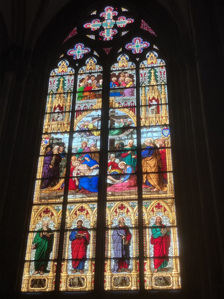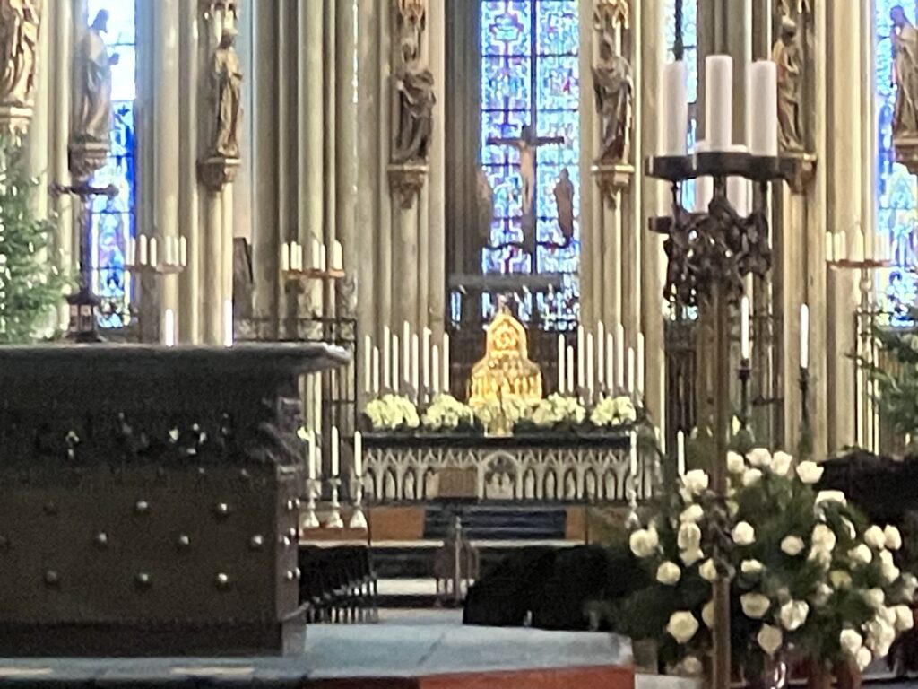 大聖堂の最奥、主祭壇の後ろにある金ピカの大きな箱。(写真みにくいですね…)これが実は世界最大の金細工の聖遺物箱で、中には新約聖書に登場する「東方の三博士(イエス誕生を祝った3人の賢者)」の遺骨が納められていると言われています。