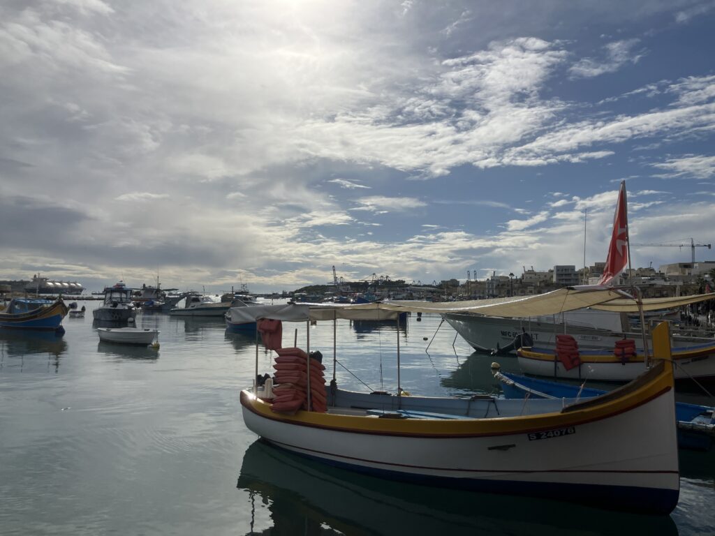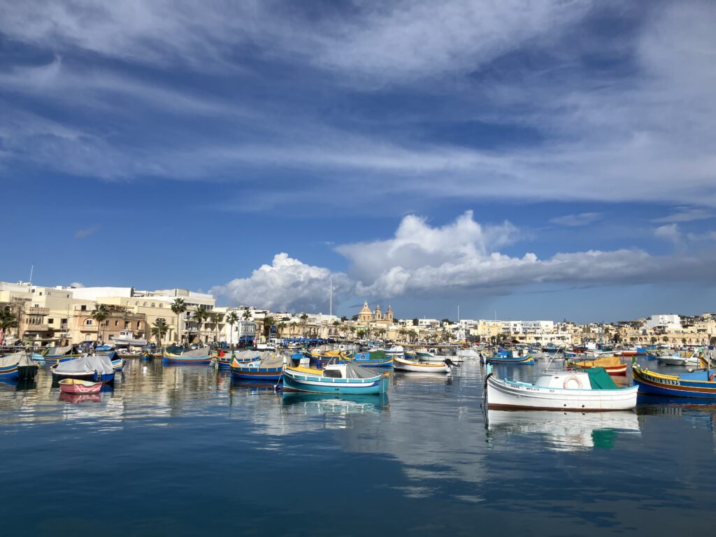 巨石神殿で歴史の重みに圧倒された後は、マルタで最もフォトジェニックな漁村、マルサシュロック(Marsaxlokk)へ向かいました。実際には翌日でしたが