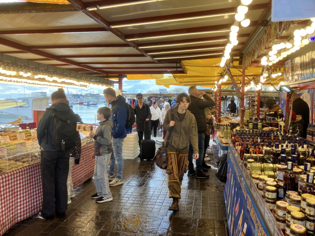 新鮮な魚はもちろん、野菜、果物、お菓子、さらには衣類や雑貨まで何でも揃う、マルタ最大級の青空市場です。