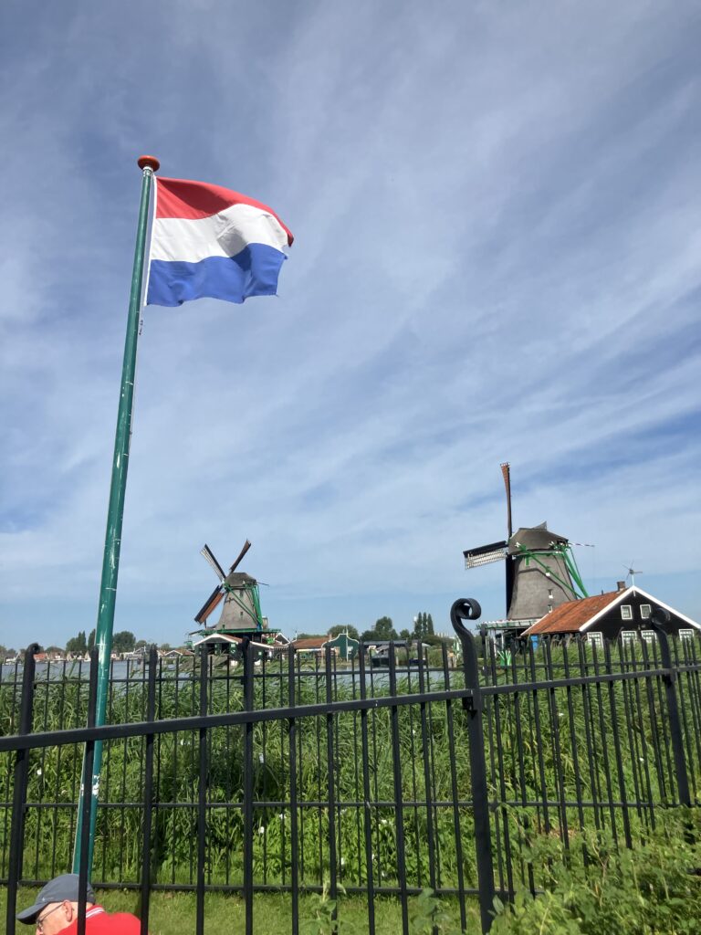それから、オランダの国旗🇳🇱が風車や青空に映えて、スマホでついパシャリと一枚撮影。