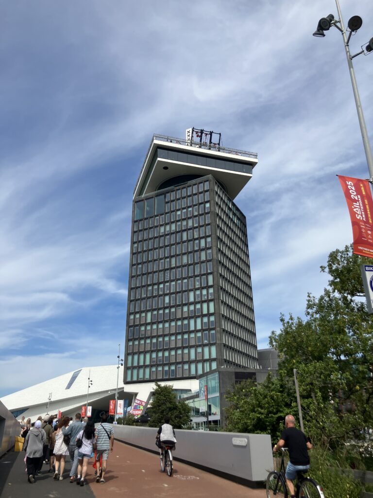 アムステルダムのA’dam Lookout(アダム・ルックアウト)アムステルダム中央駅からは無料フェリーに乗り、約5分間で対岸にあるアダム・タワーに到着します。フェリーは何回も往復しておりお気軽に移動できますよ。無料ですので用がなくても乗ってみてくださいね!
