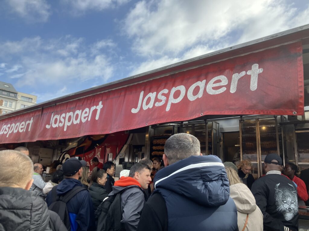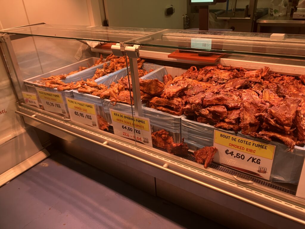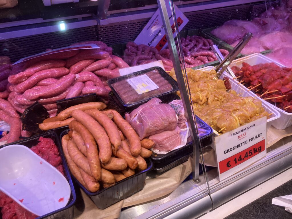 特にモロッコ人コミュニティが色濃く反映されたこのマルシェは、まるでモロッコのバザールに迷い込んだかのような活気に満ちています。お目当ての魚屋【La Méditerranée】は新鮮な魚介類が豊富で、ベルギー名物のムール貝やウニ、巨大な海老など夢のようなラインナップ。魚だけでなく生肉やホルモンも充実し、燻製の香りにも誘われます。