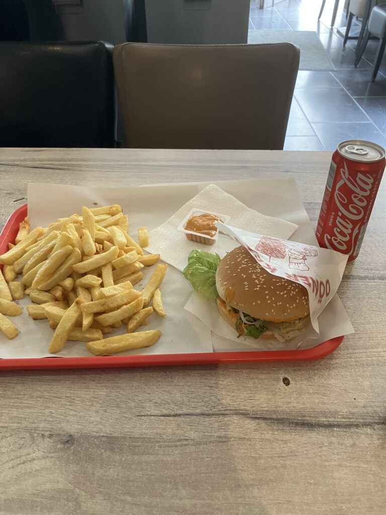 まずついたら腹ごしらえ。Googleマップを頼りにハンバーガー屋さんへ入りました。