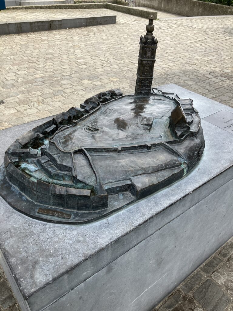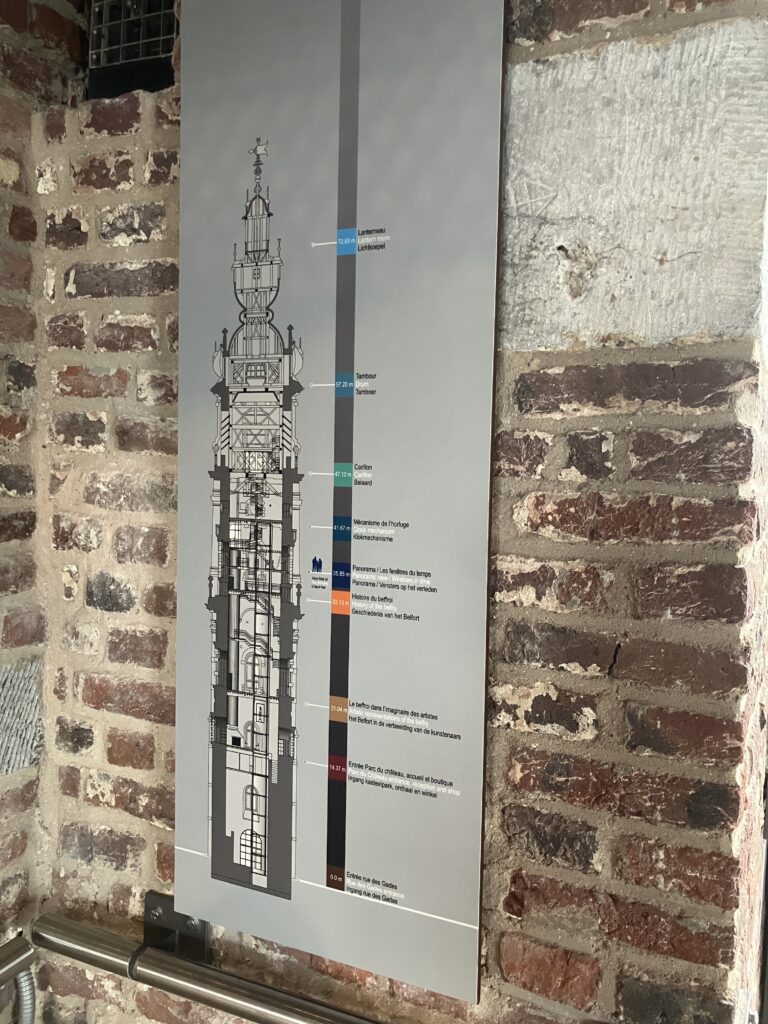 この鐘楼はベルギー唯一のバロック様式の鐘楼で、1662年に建てられ、高さは87メートル。丘の上にそびえ立ち、低い周囲の建物からでもどこからでもその姿が目立ちます。まるでRPGのマップで「塔を目指せ!」と言わんばかりです。