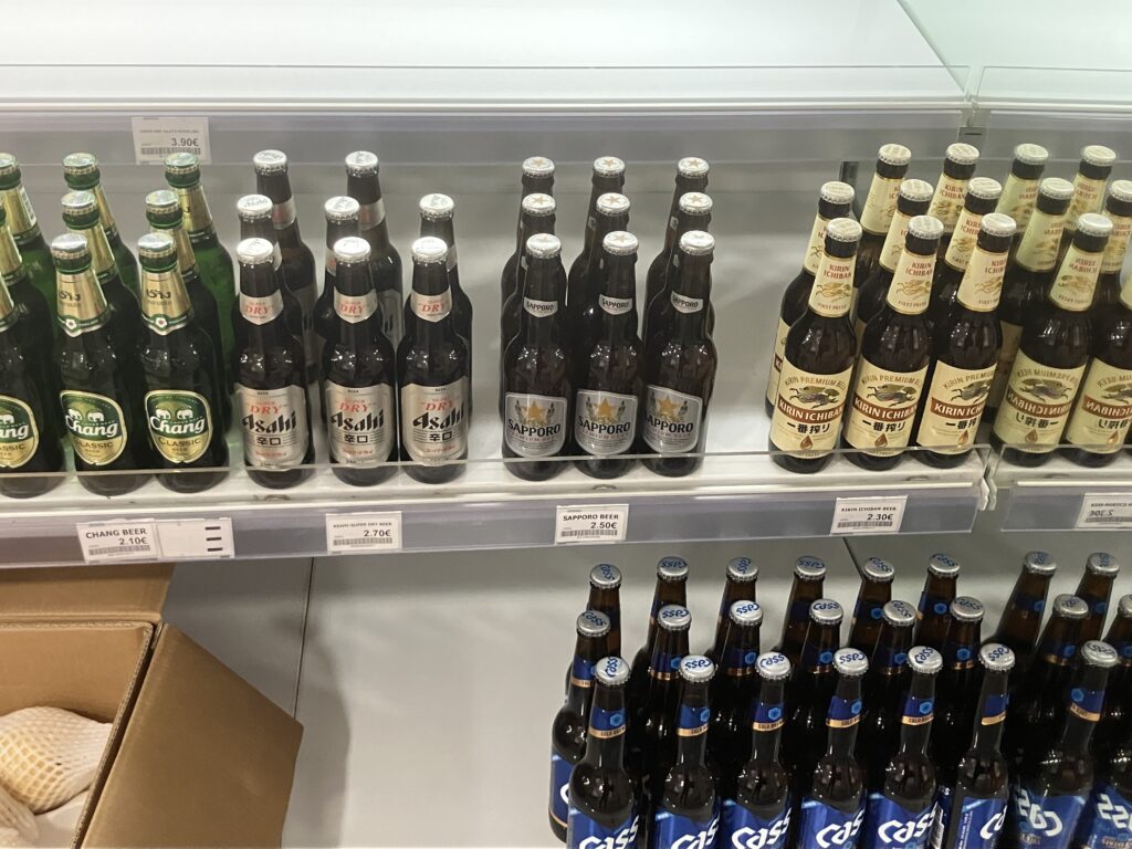キリンやアサヒといった懐かしいブランドのビールも並んでいますが、価格はやはり高めで、ベルギーのスーパーで買うより割高です。日本の味を現地で楽しめるありがたさと引き換えの値段ですね。