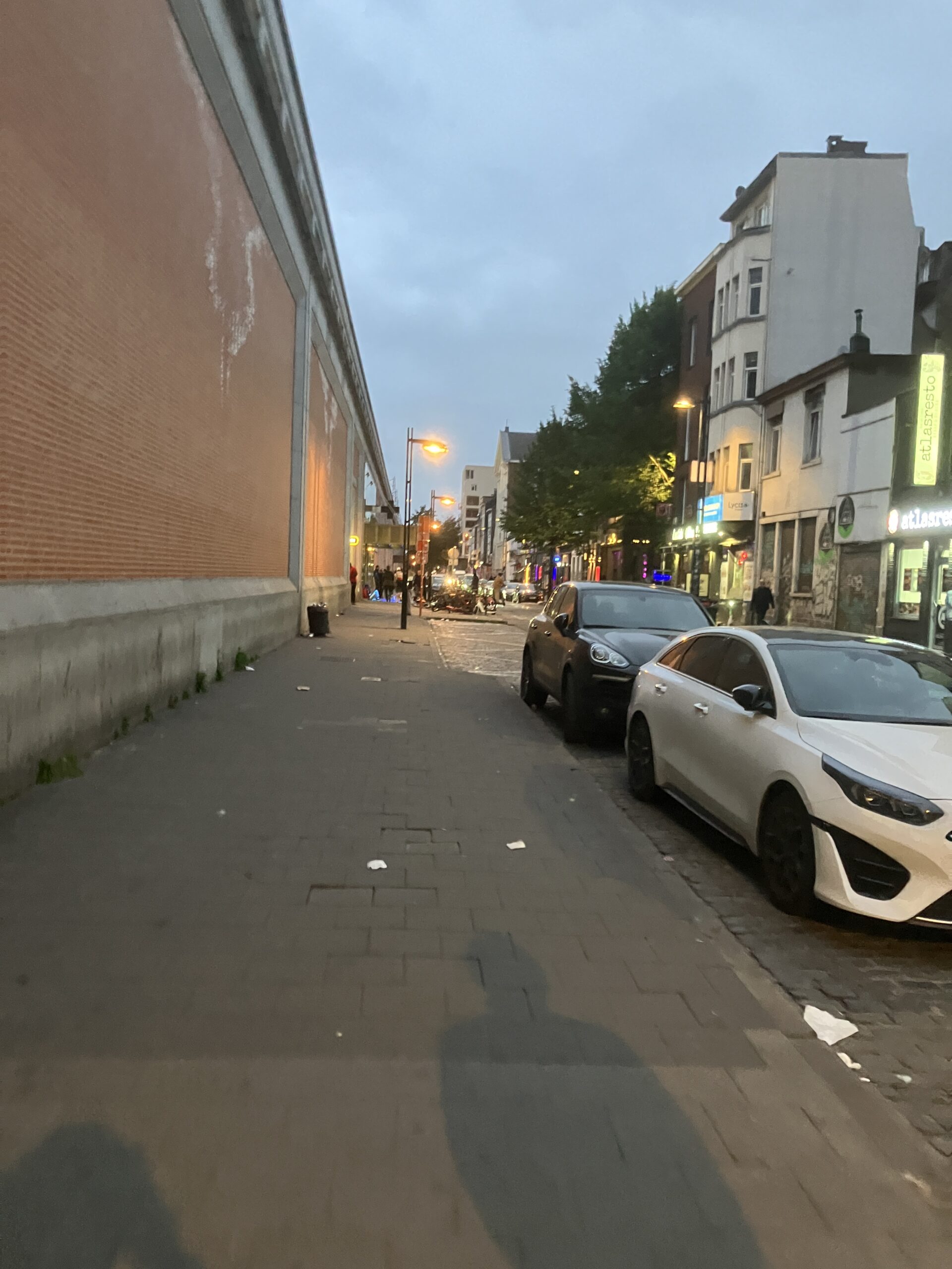 駅から徒歩数分で飾り窓エリアに到着します。駅の改札を出て、Rue d’Aerschot(ルー・ダールショット)方面へ向かって歩くと、飾り窓の建物が立ち並ぶ通りに着きます。