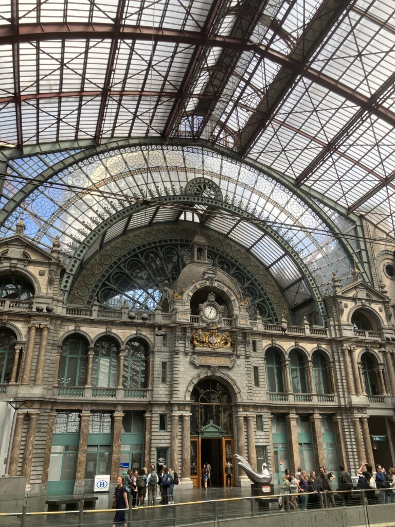 アントワープへはブリュッセルから国鉄で約1時間半。意外と近くてアクセスも良好です。到着してまず目に飛び込んでくるのが、世界一美しいと言われるアントワープ中央駅。私、こういう「世界一」と名のつくものにはつい足が向いてしまうミーハー野郎です。