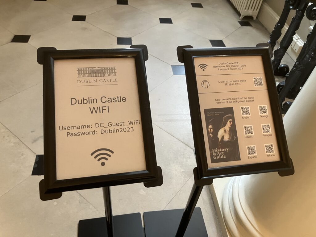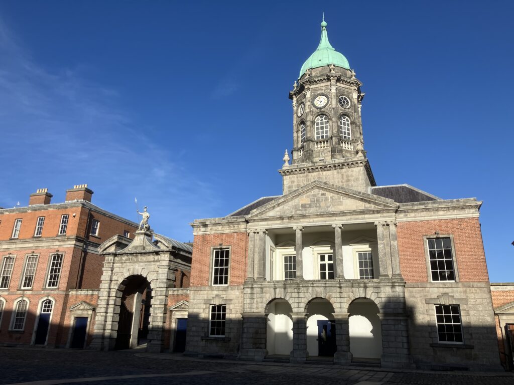 ダブリン城は市の中心部に位置しており、他の主要観光スポットと同様に徒歩圏内で訪れることができます。僕もホテルから徒歩で行けました。例えば、トリニティカレッジからは徒歩約15分、テンプルバーエリアからは約5分程度の距離ですので、散策を楽しみながら気軽に行けるのが魅力です。
