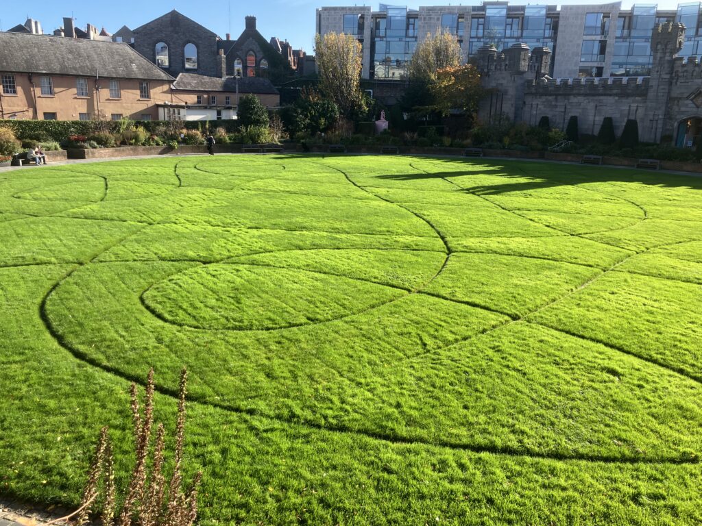 外にはダブリン城が見える庭もありとても素敵です!ベンチは座っている人で満員でした。