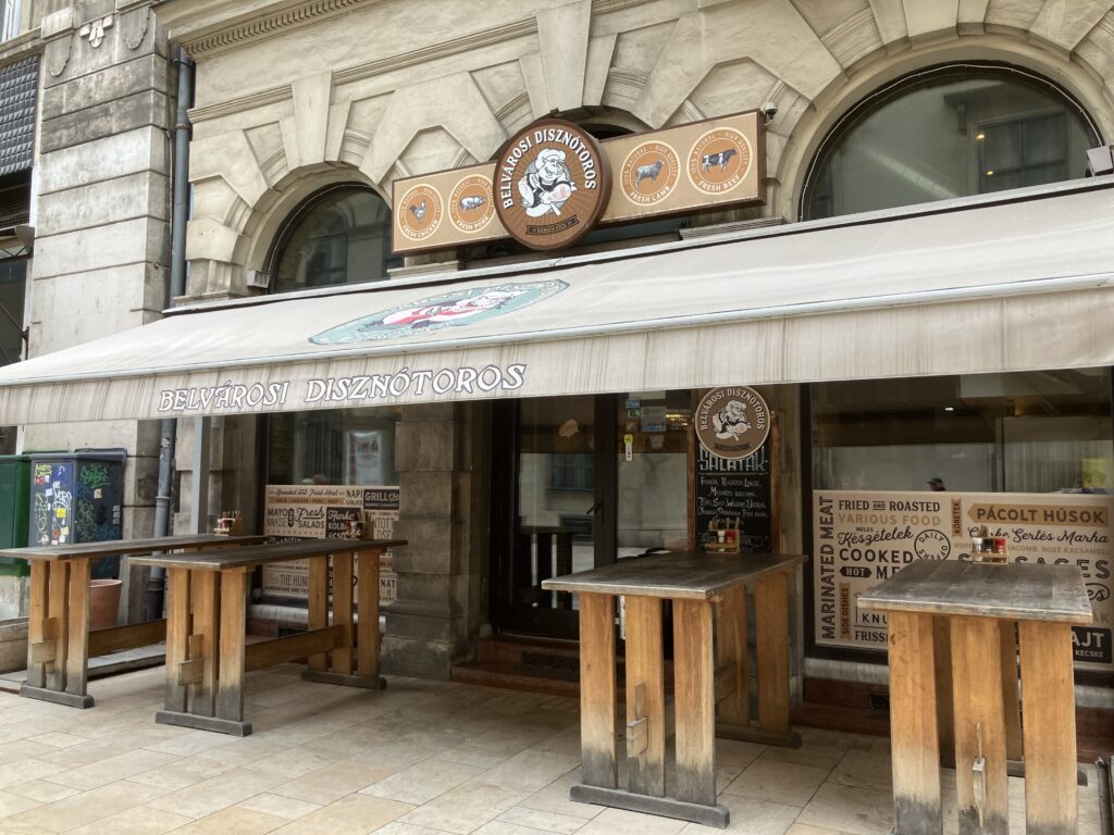 味は、とにかく「肉!油!塩!」という感じで、非常にパンチが効いています。ソーセージにはパプリカが練り込まれていて、少しピリッとするのがハンガリー流。おしゃれさとは無縁ですが、弾丸旅行のエネルギー補給には完璧な、最高に美味しいジャンクフードでした。ちなみに豚肉はとても脂身がしっかりあり、翌日胃がもたれました笑