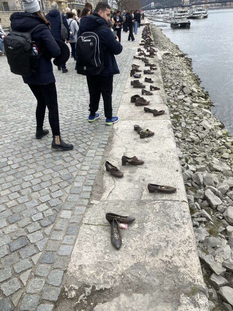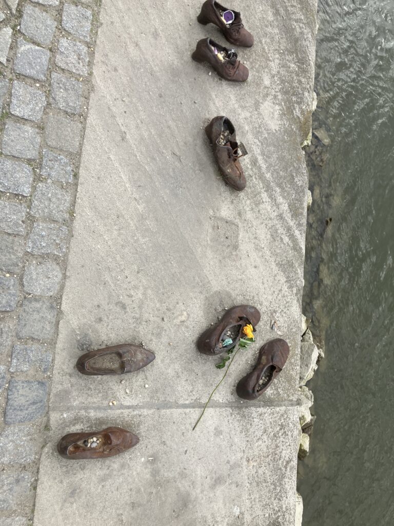 これは、第二次世界大戦中、矢十字党(ハンガリーのファシスト組織)によって、この場所で銃殺され、ドナウ川に投げ込まれたユダヤ人たちを追悼するために作られました。彼らは、靴を脱ぐように命じられ、その直後に射殺されたそうです。