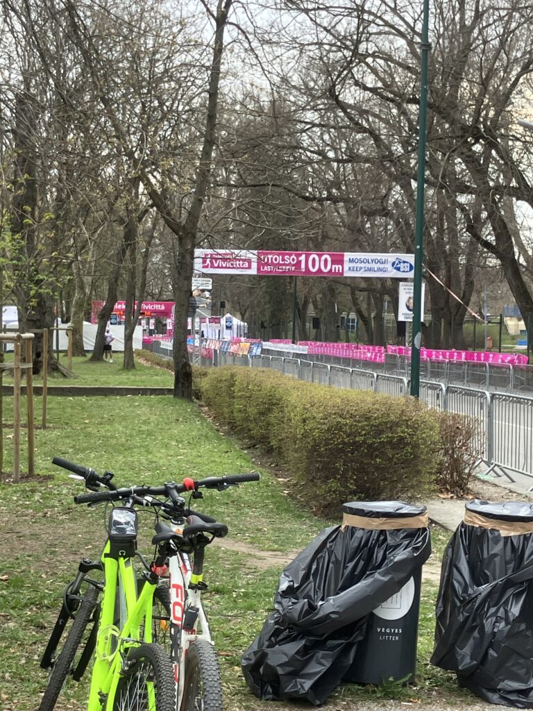「LAST 100m」の横断幕や、ゴールゲート、そして完走を目指して走るランナーたち。静かな散歩の予定はどこへやら、予期せぬ熱気に圧倒されました。でも、弾丸旅行ではこういう偶然のイベントに出会えるのも醍醐味の一つ。一生懸命走るランナーたちの姿を見て、僕も少し元気をもらいました。ちなみにマルギット島 には、日本庭園や修道院跡などがありますよ☺️