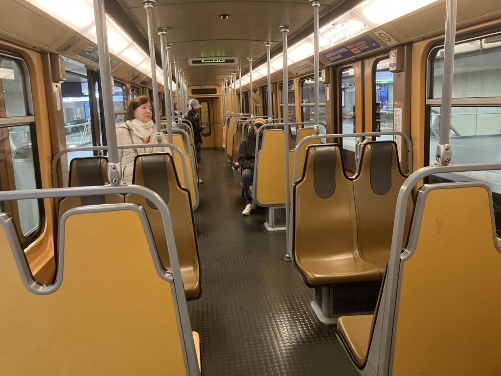 車内はこんな感じです!しかし、路線によって雰囲気は全く違います。2番や6番は向かい合って座れますが1番や5番は横座りです。出入り口付近には補助席もあります。しかし、日本では結構好まれますが、出入り口付近はスリなどが多いので気をつけてください。また、初動がかなり荒いのでしっかりどこかに捕まることをお勧めします笑