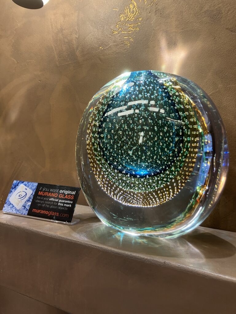 2. ガラスの島・ムラーノ島 続いて、ヴェネチアングラスで有名なムラーノ島へ。工房では職人さんがドロドロに溶けたガラスを魔法のように形にしていく実演を見ることができました。 繊細なシャンデリアや、色鮮やかなグラス……。 「これ、ベルギーの自宅に置いたらお洒落だよなぁ」と一瞬思いましたが、割らずに持ち帰る自信が1ミリもなかったので、今回はお土産用の小さな置物で我慢しました。笑