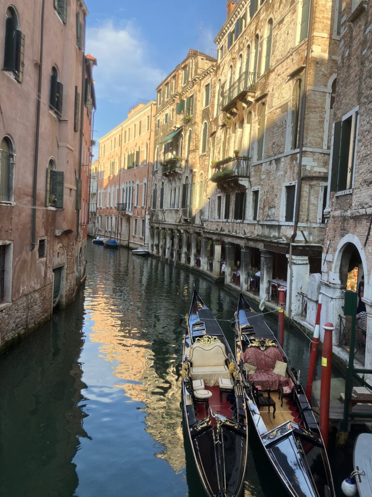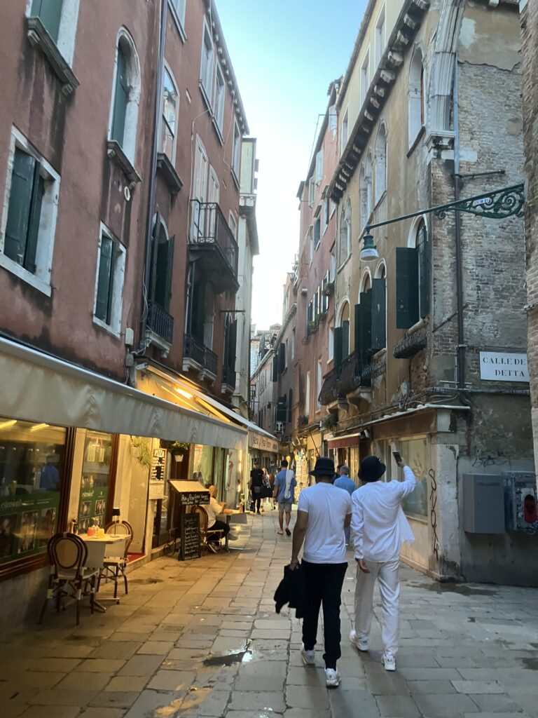 ヴェネチアに到着して駅の外に出た瞬間、目の前に広がる景色に言葉を失いました。 「本当に、道が全部川だ……!」 アムステルダムも運河の街でしたが、ヴェネチアは次元が違うと感じました。まるでディズニーの世界🐀車も自転車も一台も走っていない、聞こえるのは水の音と船のエンジン音、そして観光客の話し声だけ。