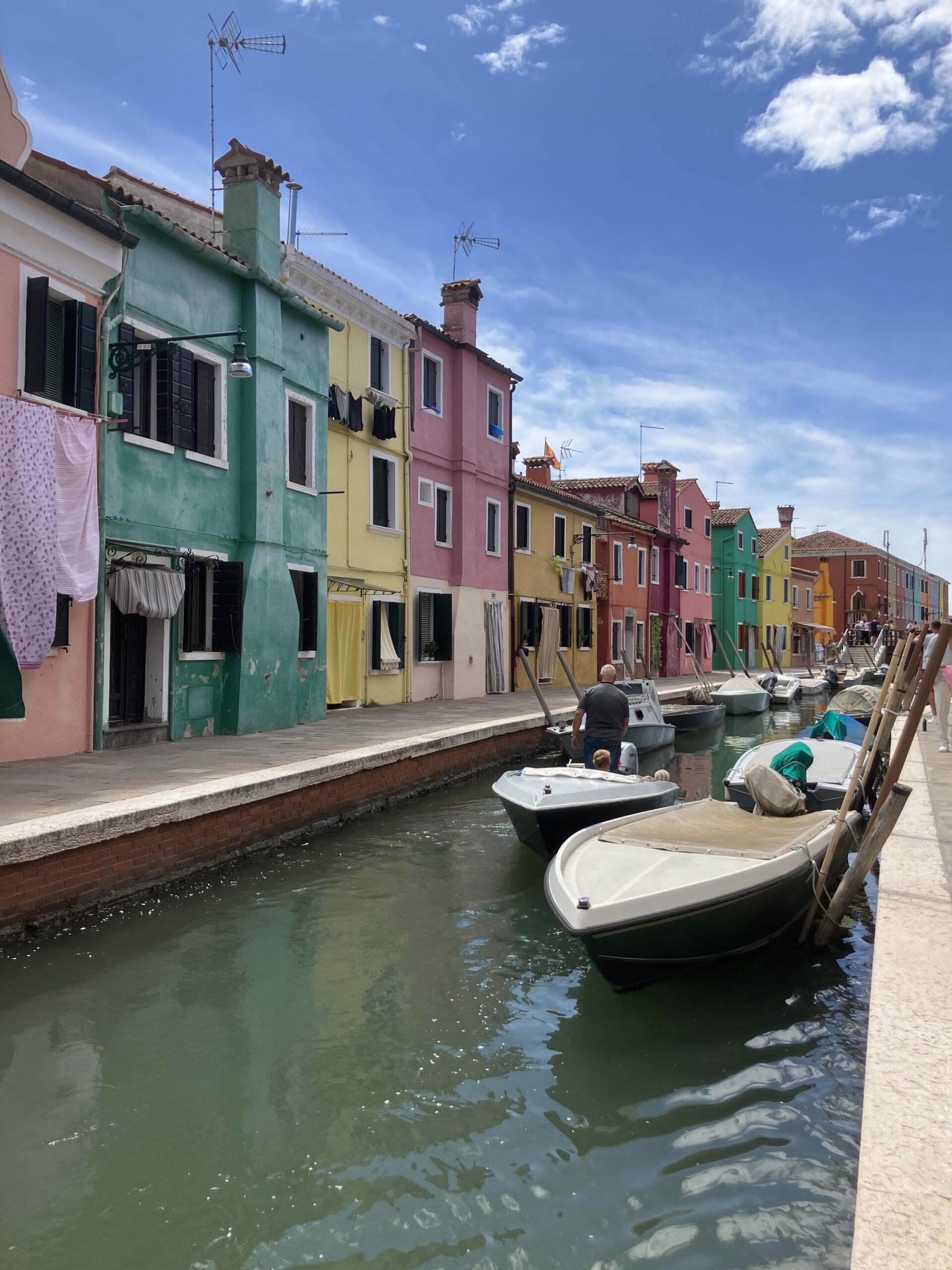 1. 色彩の島・ブラーノ島 見てください、このカラフルな家々! 霧の中でも漁師が自分の家を見つけられるように派手な色で塗ったのが始まりだそうです。どこを切り取ってもインスタ映え間違いなしの景色に、僕の古いアイフォンのカメラも唸ります。 また、伝統工芸品のレース編みがさかんだったそうなのであちらこちらにレース屋さんがあります!