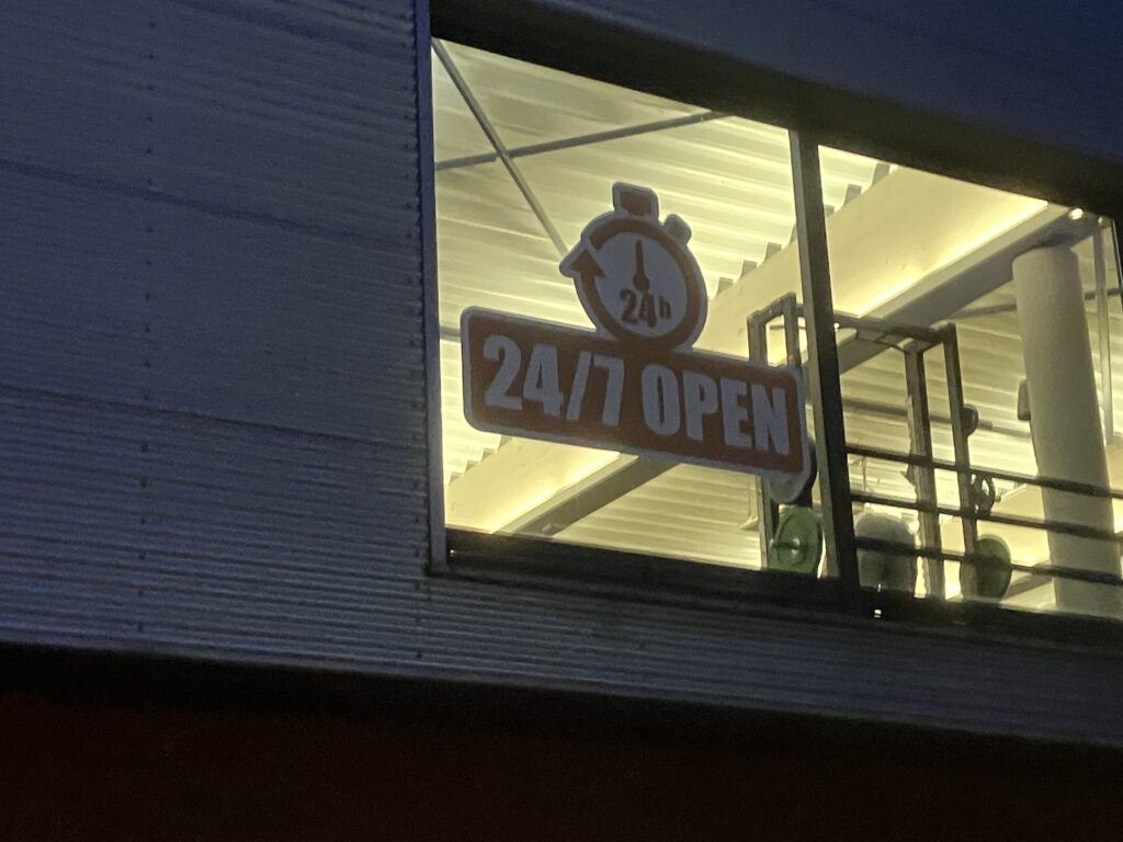 店舗ごとに営業時間は異なりますが、このオレンジのマークがある店舗は24時間オープンしています。(入り口によっては時間帯で出入り口が変わる場合があるので要注意です。)