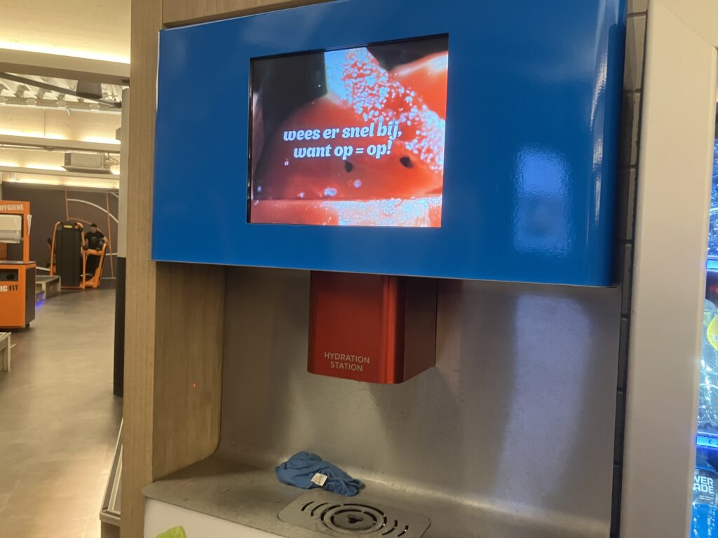 また、プレミアムプラン以上であれば、自動販売機で水分補充が可能です。こちらもエントランス同様、QRコードをかざすだけで使えます。水以外にフルーツ水のようなものもありますが、味の好みは分かれるところ(笑)。僕はもっぱら普通の水派です。
