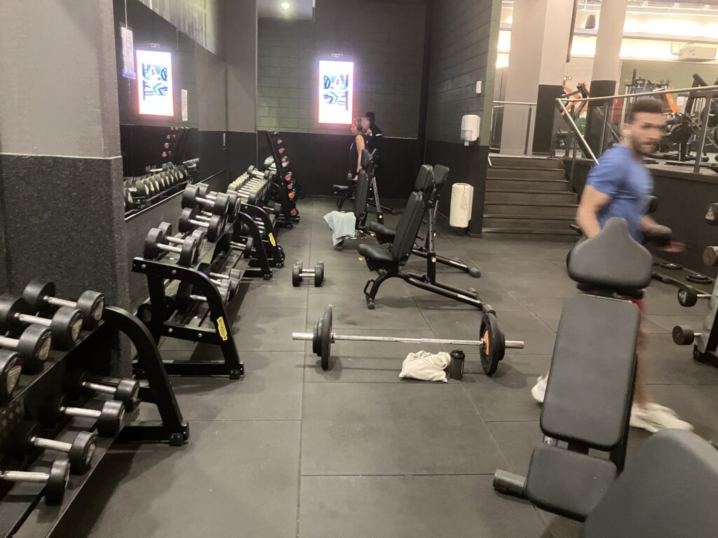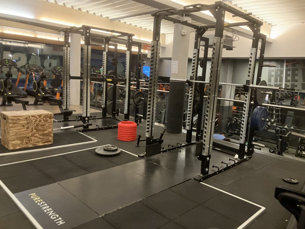 フリーウエイトエリアも充実していて、スクワット・デッドリフトはもちろん、クリーンができるのも大きな利点ですね。ベンチプレス台も何台かあるのですが、安全バーがなく、僕はちょっと怖くてあまり使っていません。