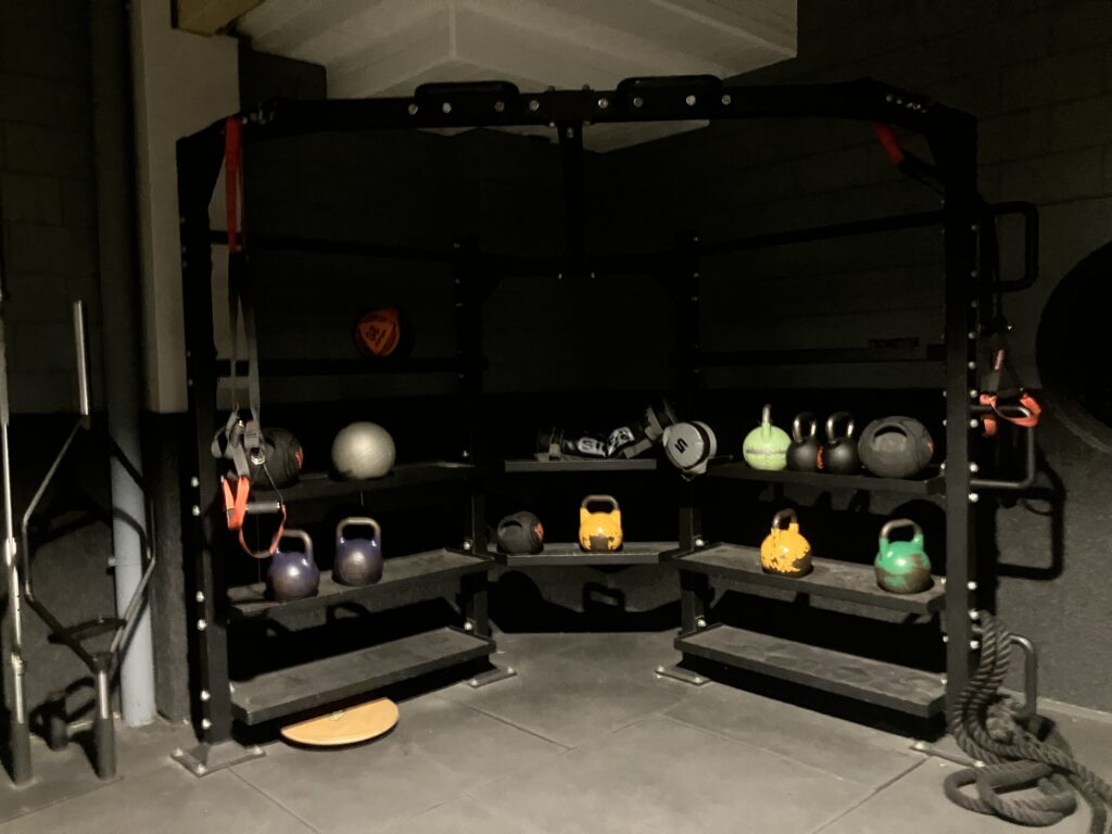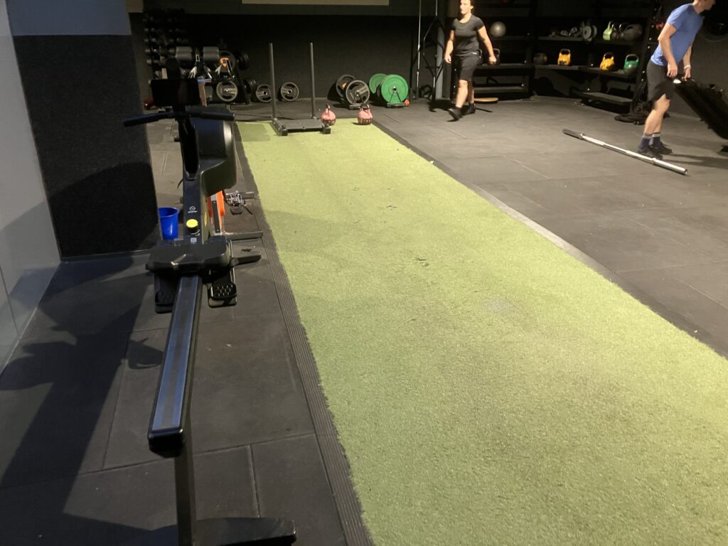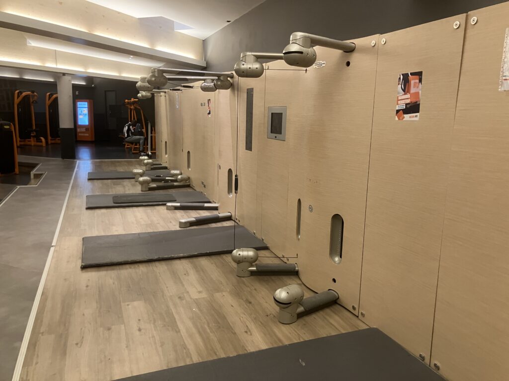 さらに、この店舗には別室のトレーニング施設もあり、荷重そりやケトルベルが置いてあってとても広々としています。スタジオもあり、ヨガ教室などがよく開催されていますが、僕が行ったときは誰も使っていませんでした。