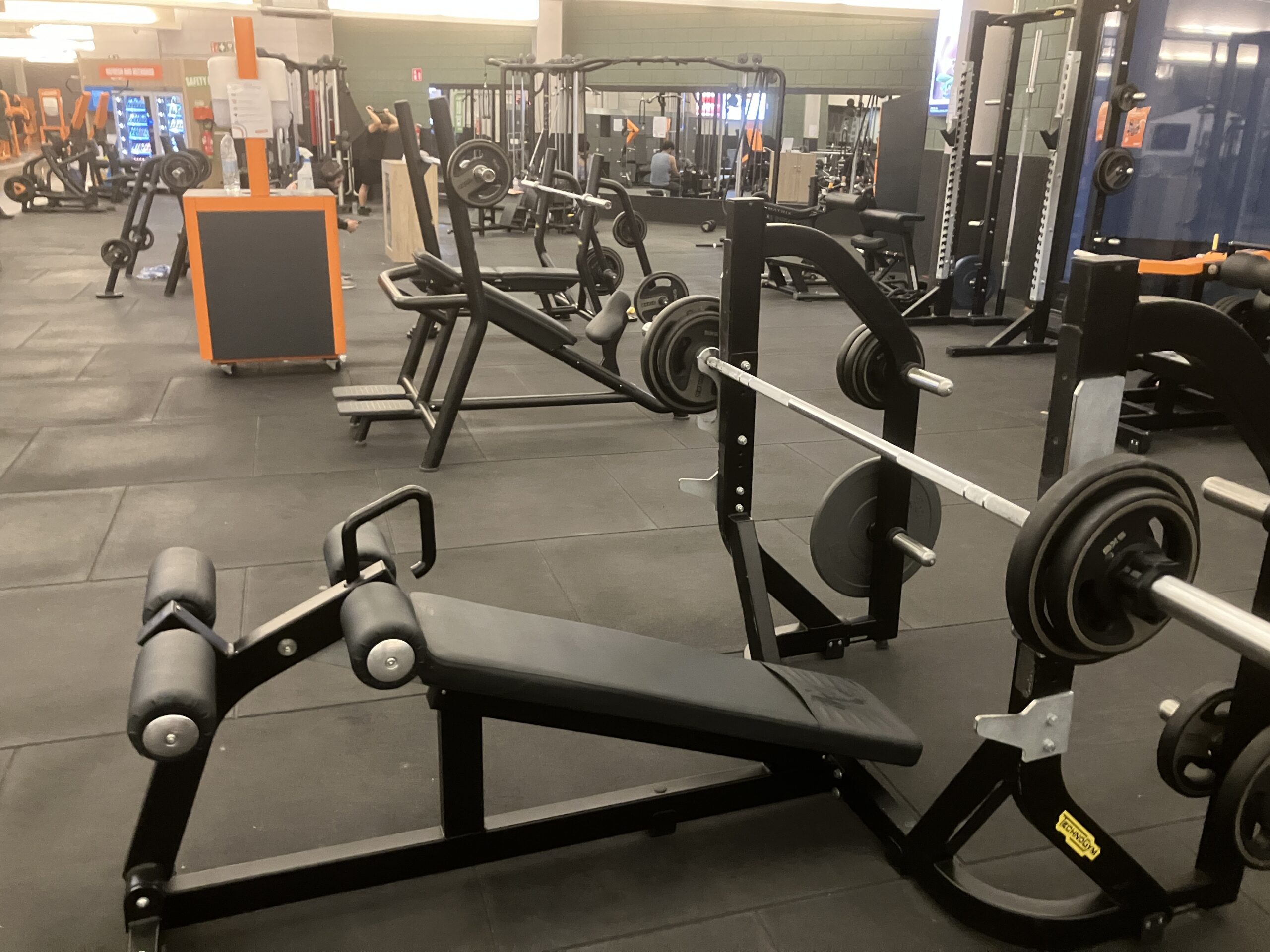 フリーウエイトエリアも充実していて、スクワット・デッドリフトはもちろん、クリーンができるのも大きな利点ですね。ベンチプレス台も何台かあるのですが、安全バーがなく、僕はちょっと怖くてあまり使っていません。